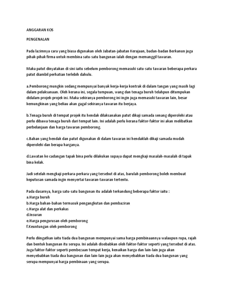 Anggaran Kos Binaan Bangunan Pdf
