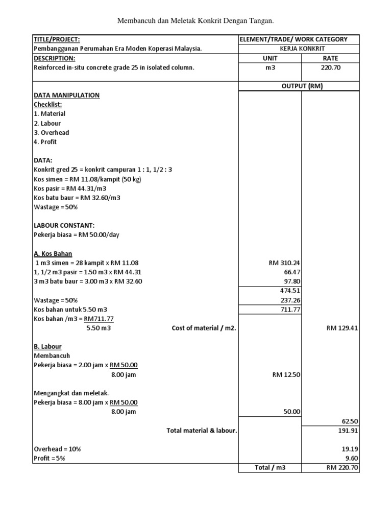 Anggaran kos pembinaan 30 x 10 x 5 x RM 30m 3 kadar berdasarkan projek terdahulu. 71-02 Jalan Setia Tropika 18 Taman Setia Tropika Johor Bahru. Attribution Non-Commercial BY-NC Format Tersedia.