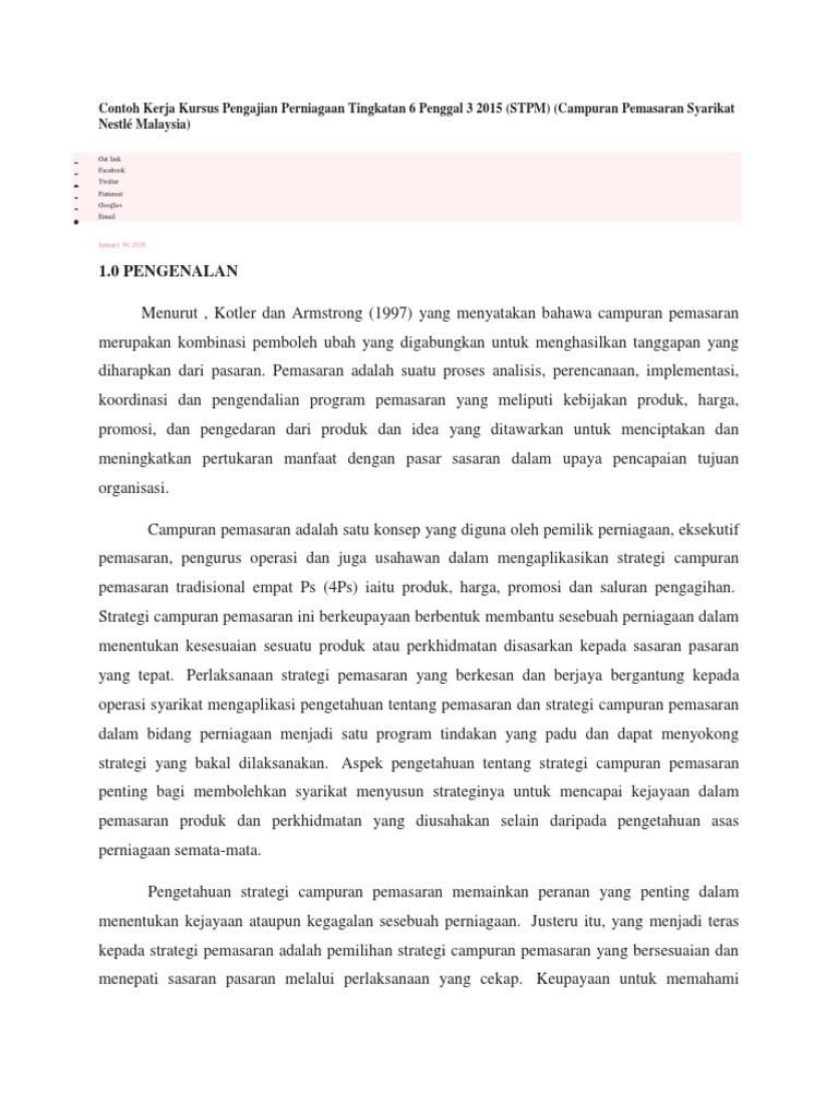 Jan 15 2022 tentu perusahaan atau institusi tersebut sedang membuka lowongan kerja. Contoh Kerja Kursus Pengajian Perniagaan Tingkatan 6 Penggal 3 2015 STPM Campuran Pemasaran Syarikat Nestlé Malaysia. Bandar Baru Sungai Bul oh.